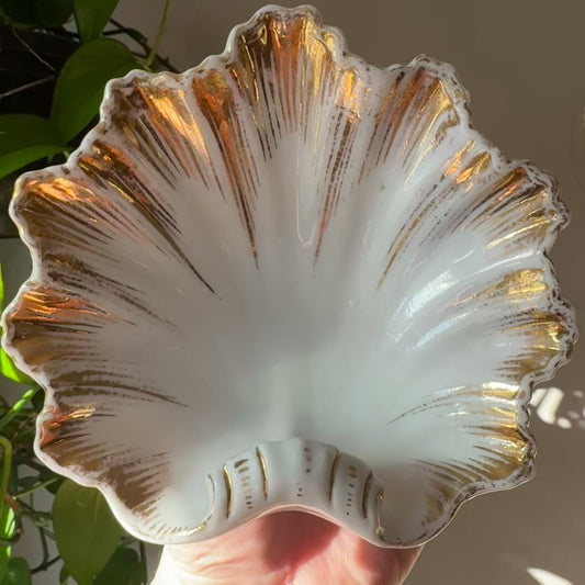 Antique Victoria Karlsbad Austria - Gold trimmed Shell Dish