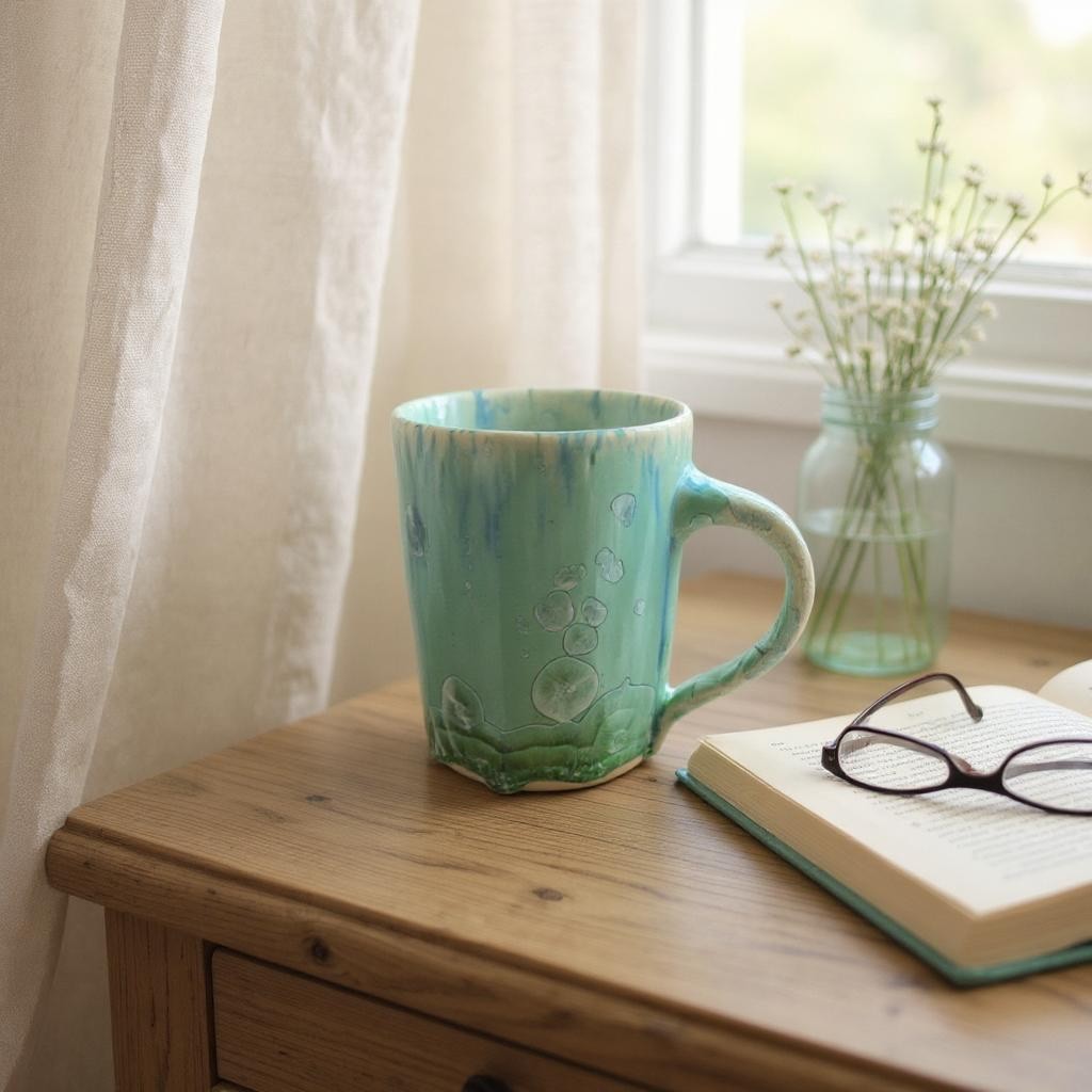 Characteristics and Personality: This handmade crystalline-glazed mug bears the organic beauty of its creation — subtle drips, gentle variations, and surface nuances that make each piece one-of-a-kind. These natural imperfections are a hallmark of the artist’s hand, adding depth and authenticity to its charm.