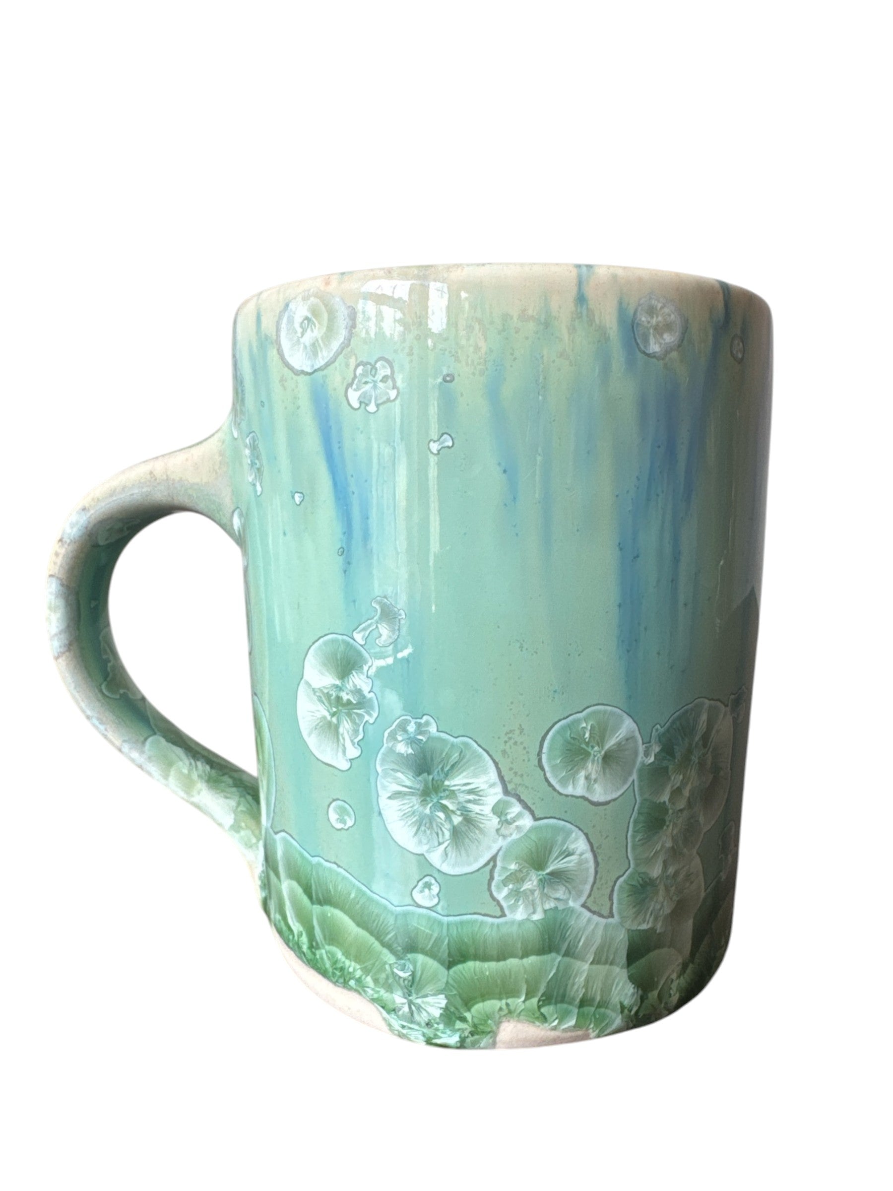 Designed for everyday use, this mug combines a comfortable grip with a balanced form and a durable ceramic body. The crystalline glaze creates subtle color shifts and unique patterns, ensuring that no two mugs are exactly alike.